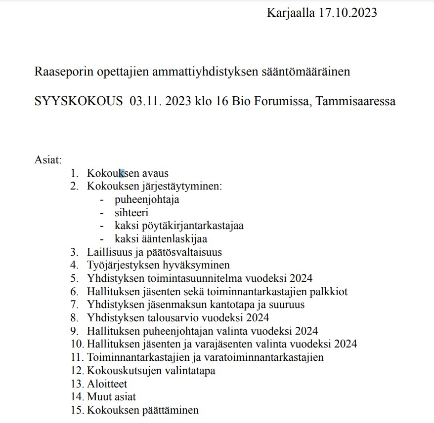 Raaseporin OAY:n kevätkokous pidetään Karjaalla Sociksessa tiistaina 7. toukokuuta klo 16.30 Oaj Uusimaan alueasiantuntija Minna Mouhu kertoo kokouksen aluksi ajankohtaisista asioista.